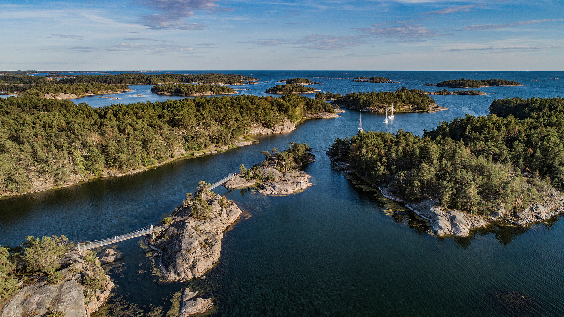 Gå över hängbroarna till de närbelägna öarna och ta ett dopp. Vila på klipporna eller ta dig upp i utsiktstornet och spana ut över havets vidder – kanske ser du hela vägen till skärgårdens sista utpost Hävringe?
